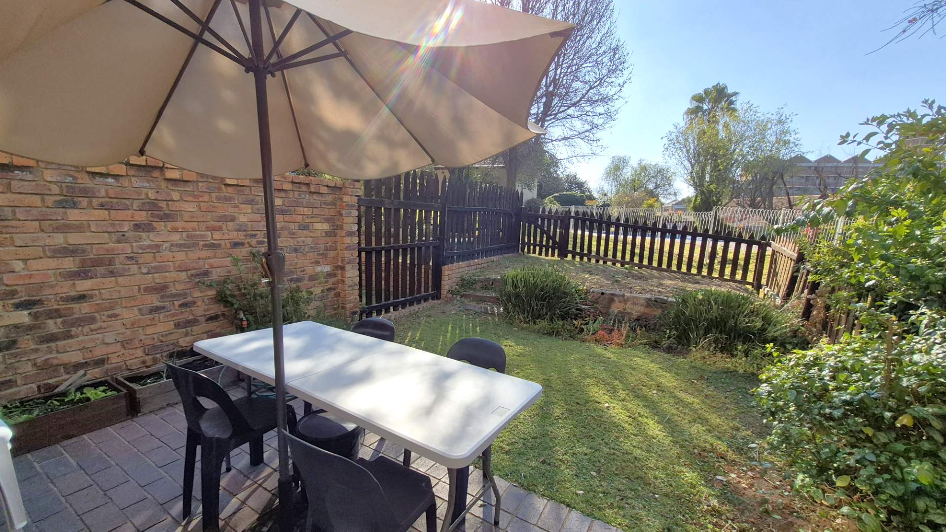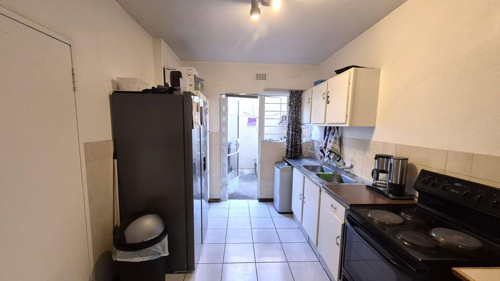 The functional kitchen offers plenty of cupboard space, room for your appliances, and direct access to the courtyard.