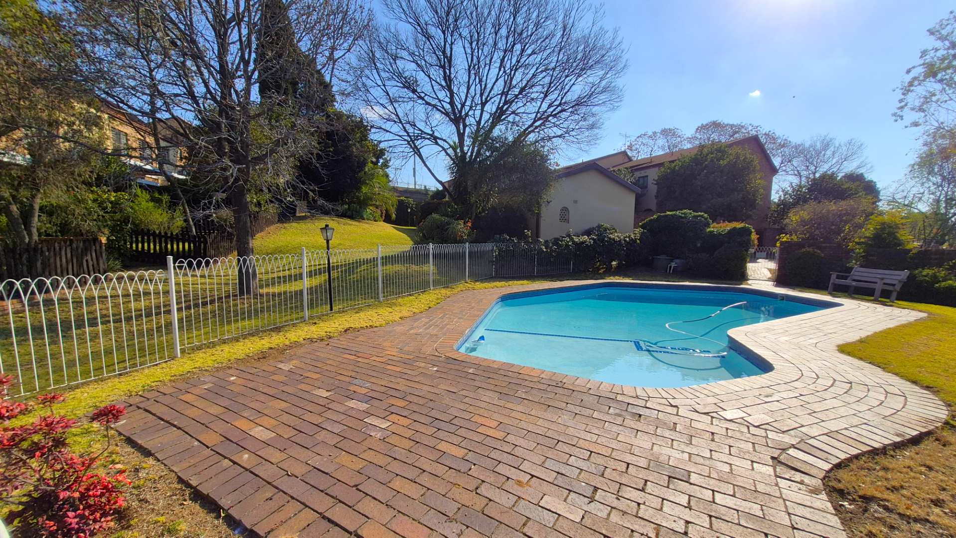 The main bedroom is north-facing and sunny, while two additional bedrooms share two bathrooms — one with a bath and the other with a shower.