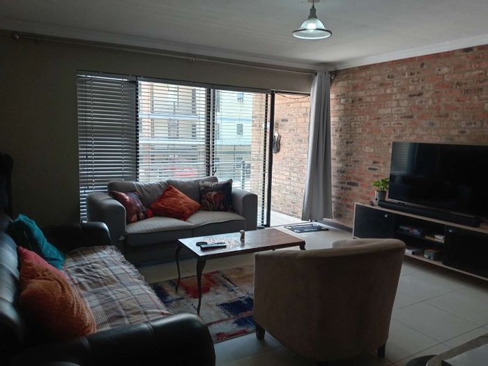 Sunlit apartment in secure Meadowdale gated estate, steps from Village View shopping — open-plan living with private balcony, en-suite main, gym, pool, fibre-ready, covered parking.