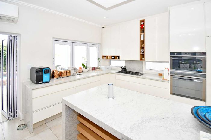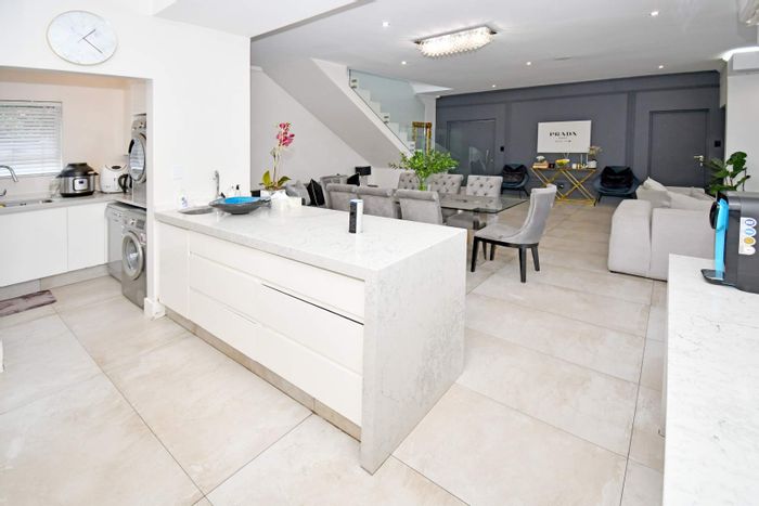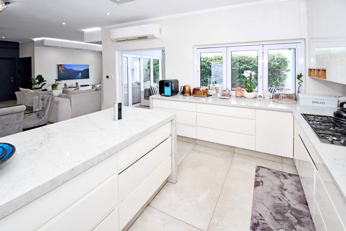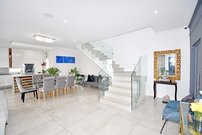 Entertainer's dream with seamless indoor-outdoor living, just off Summit Road between Morningside and Bryanston — minutes to top schools and shops. Features home automation, heated pool, four ensuites, double garage.