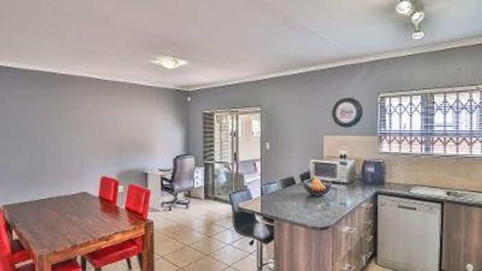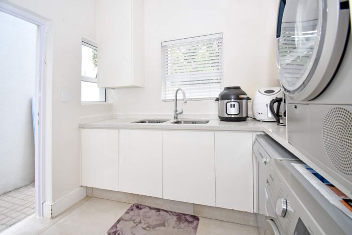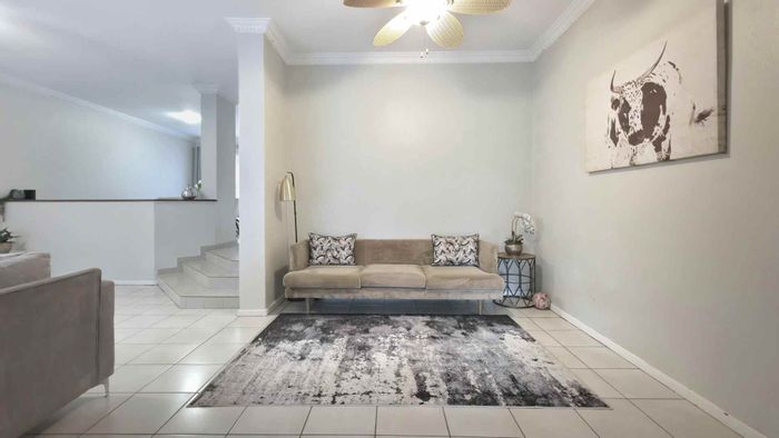 Upscale suburban living beneath Sandton’s skyline, steps from the Gautrain and premier amenities, with a covered patio and private garden — three bedrooms, 2.5 baths, double garage.