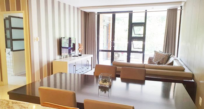 Resort-style living with pool, gym and full generator backup; fully furnished two-bedroom apartment walking distance to Benmore shops, Crawford School and Varsity College, two bathrooms and double garage.