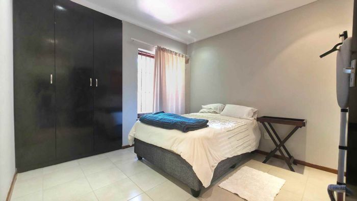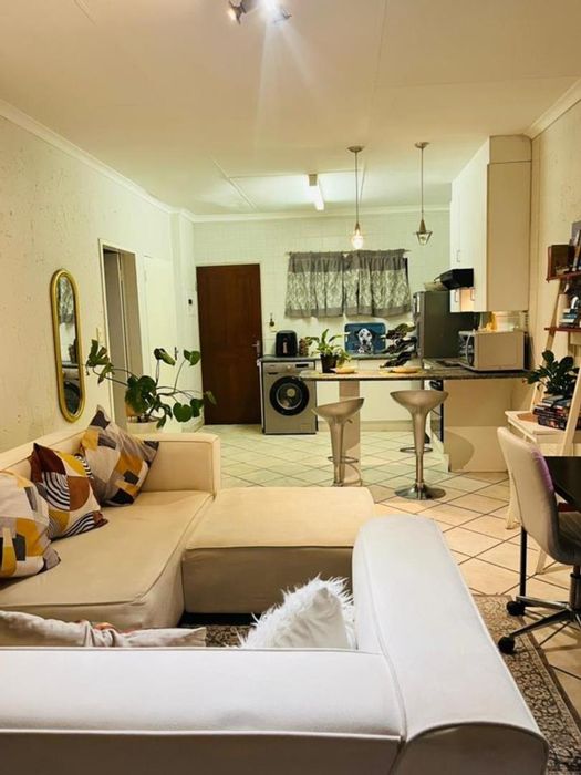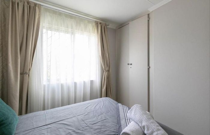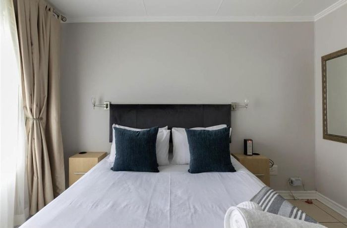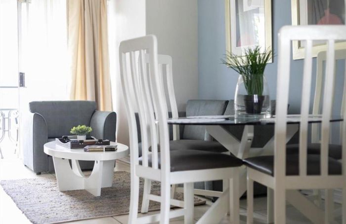 Effortless, secure estate living opposite Virgin Active, steps from Morningside Shopping Centre and major routes — furnished apartment with private garden, inverter backup, pool access, two bedrooms and one garage.