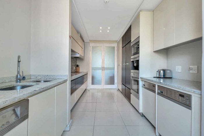 Entertain effortlessly in Sandhurst Towers, Sandton's elite address with Benmore and CBD convenience; north-facing balcony with eight-seater dining, gourmet kitchen, two bedrooms, two baths, double garage.