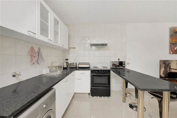 Live effortlessly near Sandton CBD in a secure boomed complex, with a covered patio offering panoramic garden and pool views. Spacious 3-bedroom, 2-bath apartment with two parking bays.