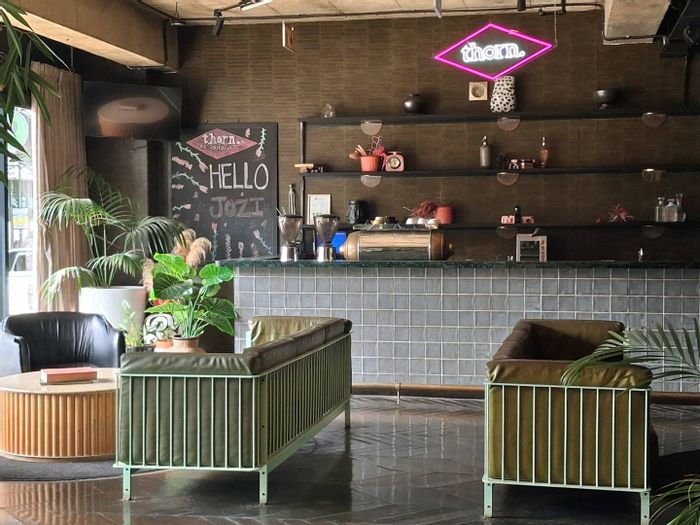 Vibrant urban living in Maboneng Precinct, steps from cafes and galleries. Spacious bachelor with high ceilings and private balcony offering city views; modern kitchen and one bathroom.