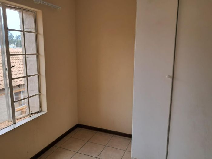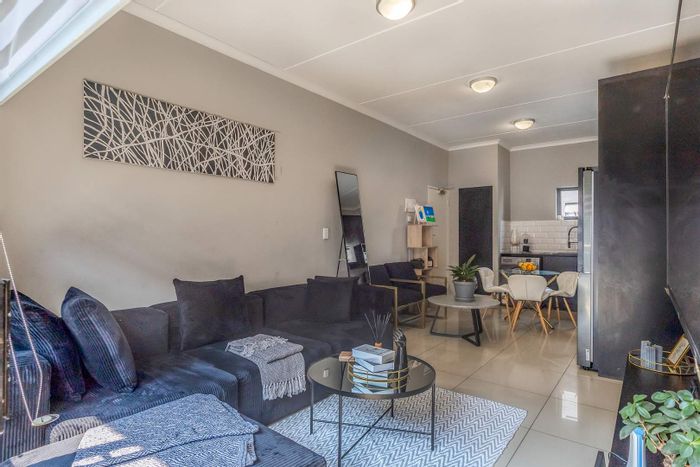 Relax in estate living steps from Carlswald Shopping Centre, Sunridge Complex and Gautrain — open-plan kitchen, upstairs bedroom with cupboard, balcony lounge and communal pool and braai. 1 bed, 1 bath.