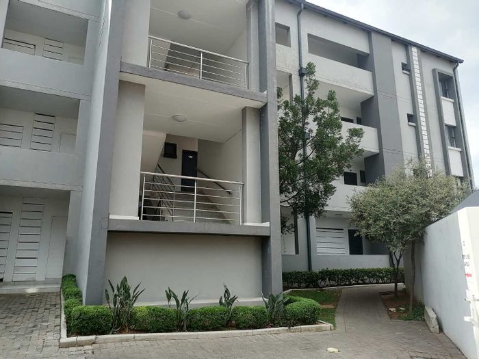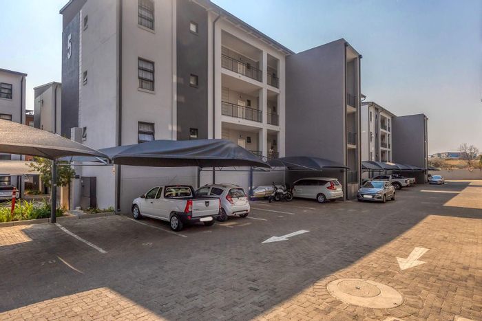Enjoy effortless urban living minutes from the Gautrain and Gallagher Convention Centre — private balcony with elevated views, contemporary kitchen, secure complex with covered parking. 2 beds, 1 bath.
