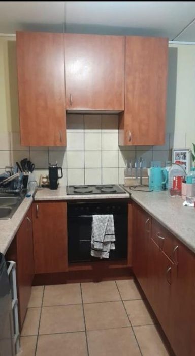 Commuter-friendly living steps from Gautrain Midrand, shops and medical centers — secure second-floor one-bedroom apartment with covered parking, built-in cupboards, tiled open-plan kitchen and WiFi included.