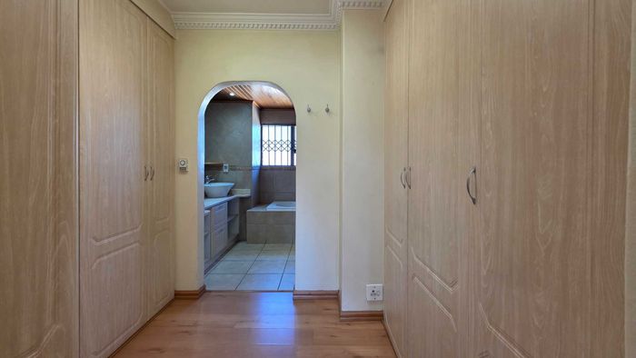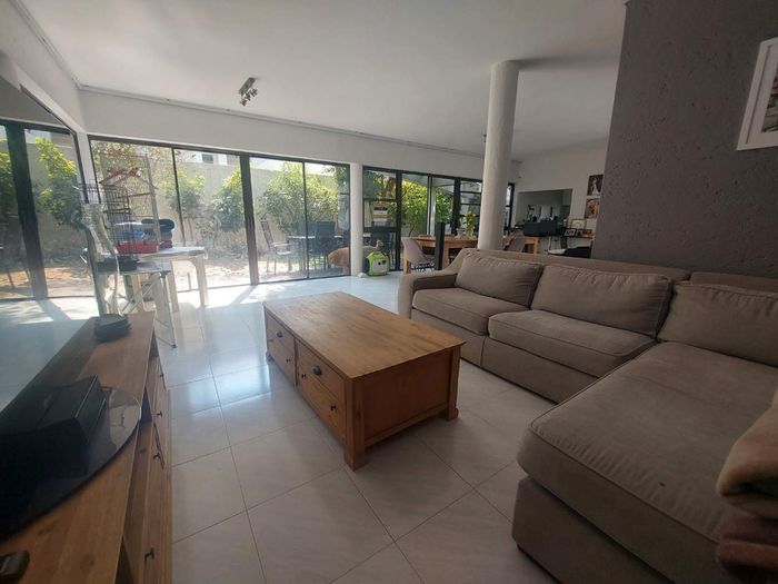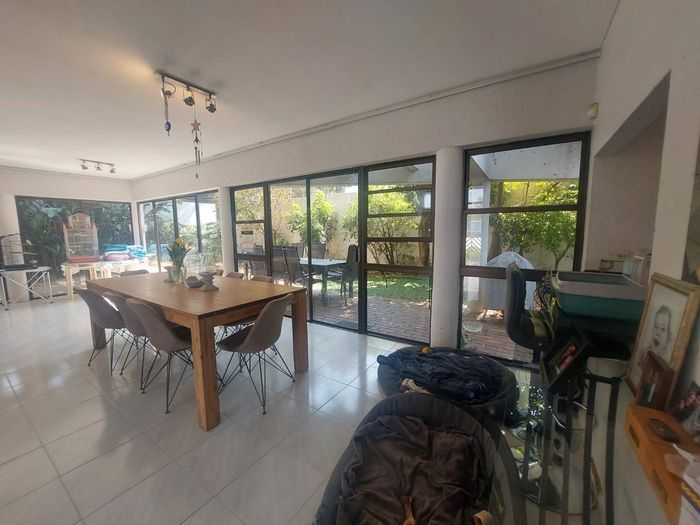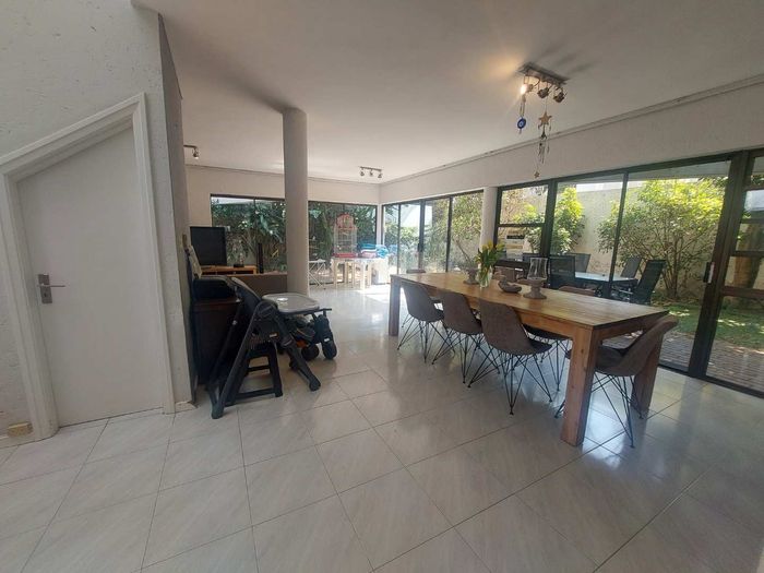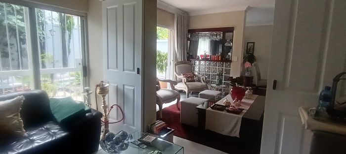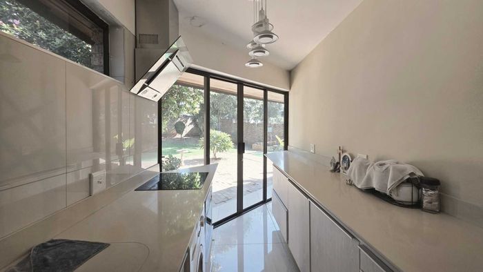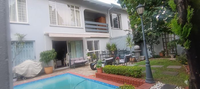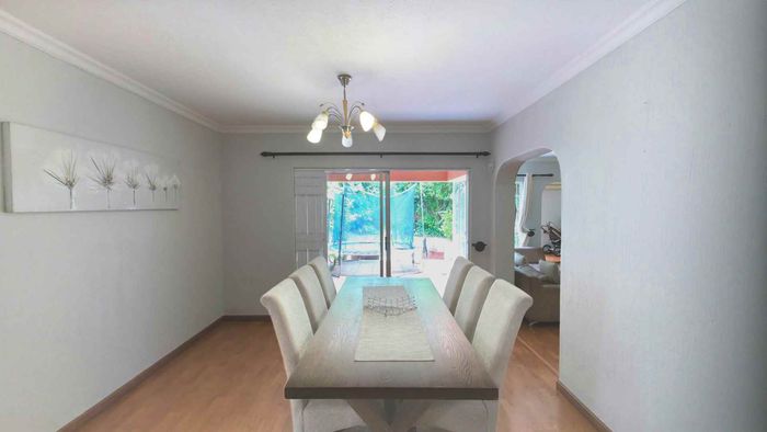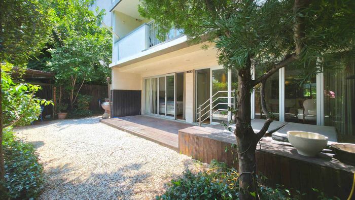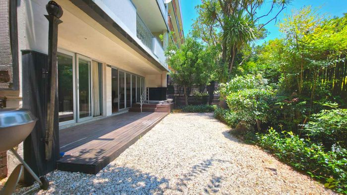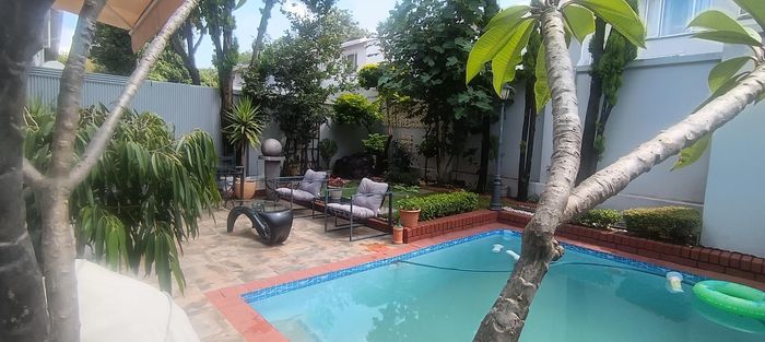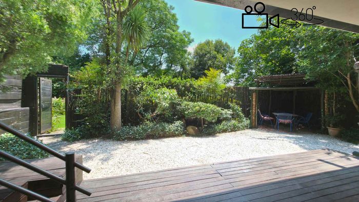 Live city-edge yet tranquil in Sandton's shadows, steps from Gautrain — entertainer's home with manicured private garden, covered patios, three bedrooms, two bathrooms and double garage.