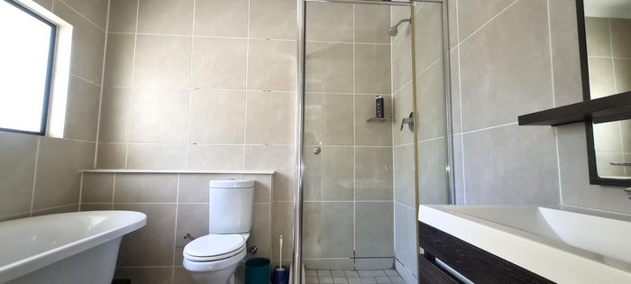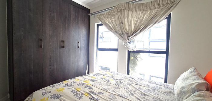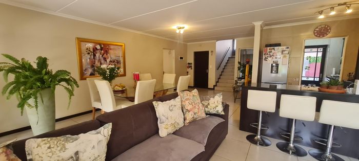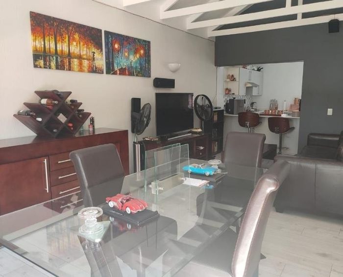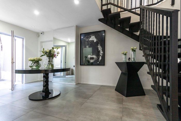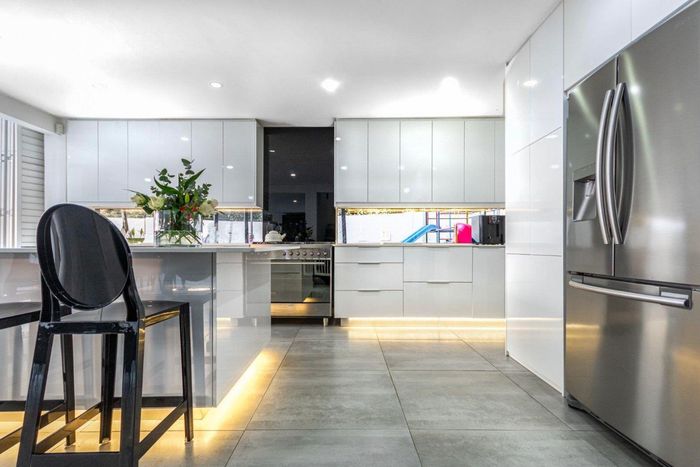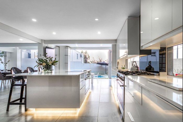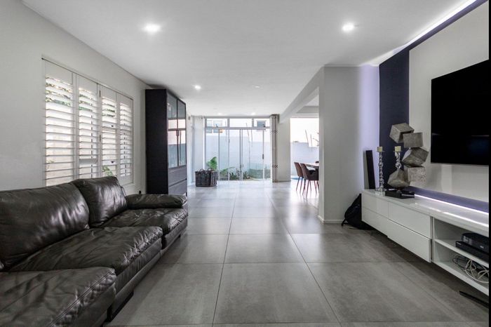 City-edge living steps from Gautrain, Sandton City and the business district, with light-filled reception rooms, wooden floors and a Caesarstone kitchen breakfast nook — three beds, two baths, double garage.