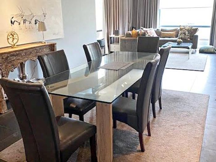 Enjoy effortless urban living within walking distance of Benmore shops, Crawford School and Varsity College — furnished apartment with pool, gym, full generator, covered balcony; two bedrooms, two bathrooms, double garage.