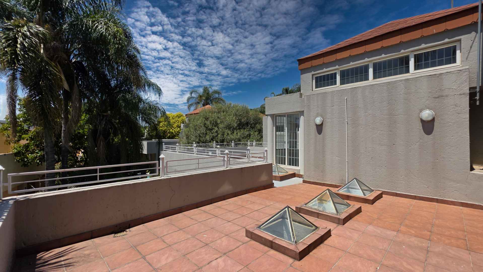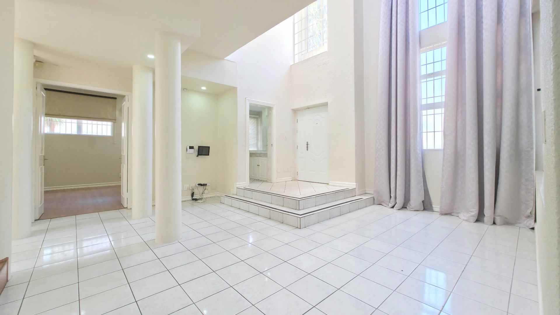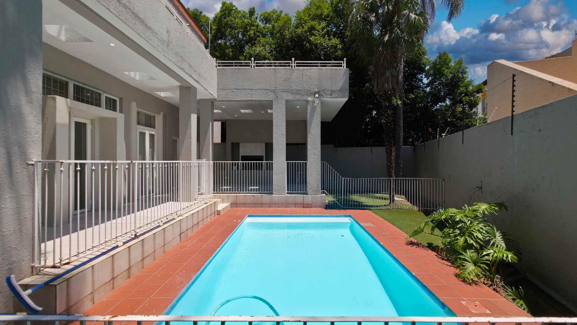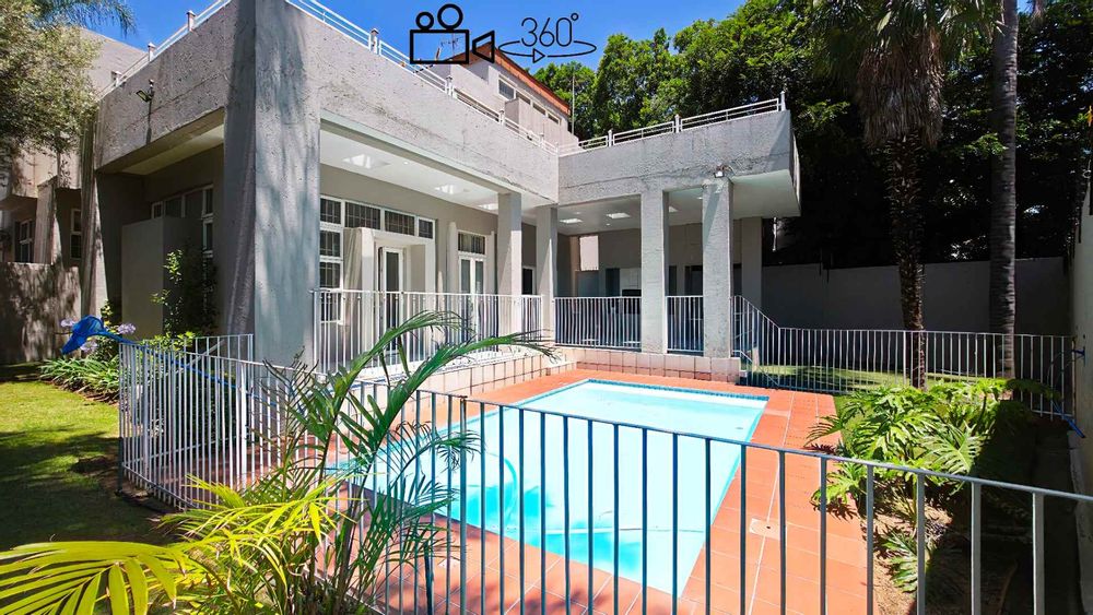 Perfect for entertaining, it features two expansive reception rooms that open seamlessly onto an extended covered patio with a built-in braai, overlooking beautifully manicured gardens and a sparkling swimming pool.