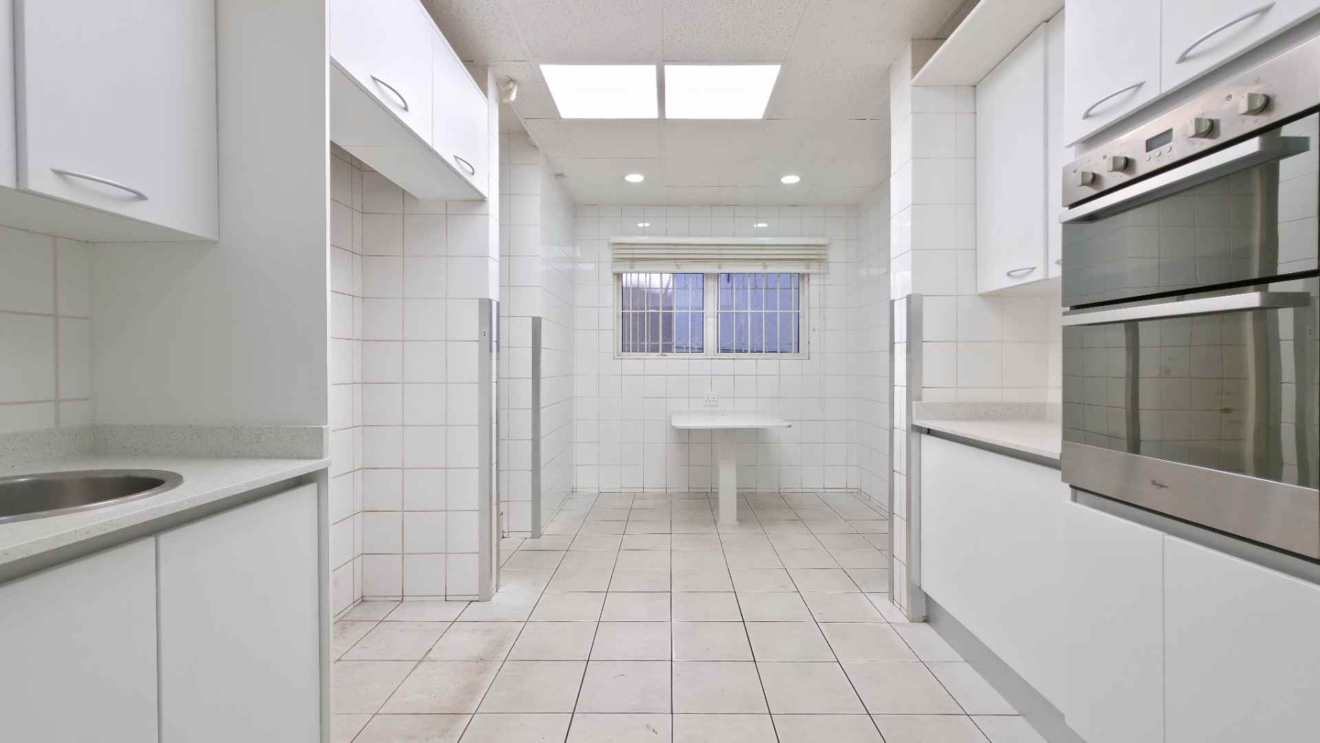 The well-appointed kitchen includes a main cooking area with a serving window, scullery, laundry, and a cozy breakfast nook.