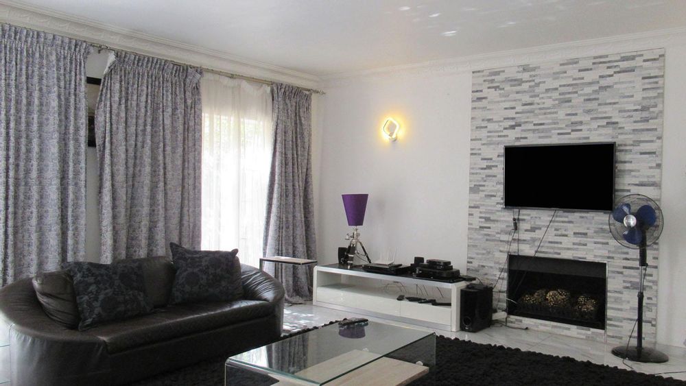 Step inside and discover a generous open-plan kitchen featuring ample cupboard space, sleek granite countertops, a hob with extractor fan, double eye-level ovens, and space for both a double-door fridge and washing machine. The kitchen flows seamlessly into the dining area and TV lounge, all beautifully tiled for a clean, modern feel. A separate formal lounge opens onto a large, lush garden—perfect for entertaining or creating your own outdoor retreat.