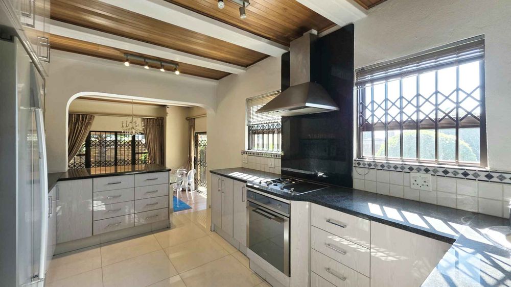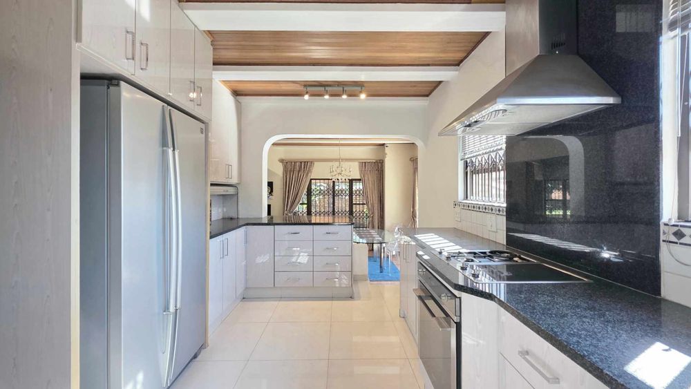 The sleek open-plan kitchen, appointed with granite countertops, a gas hob, and space for a double fridge plus an eat-in area, adjoins a practical scullery and tranquil courtyard—ideal for alfresco dining or afternoon repose.